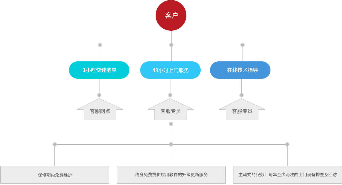 被動(dòng)的解決問(wèn)題不是服務(wù)的全部,一康更加追求主動(dòng)式的服務(wù),每年至少兩次的上門(mén)設(shè)備排查及回訪,及時(shí)排除故障隱患,有效預(yù)防故障的發(fā)生。傾聽(tīng)客戶(hù)的需求和建議,不斷完善產(chǎn)品的質(zhì)量和服務(wù)水平。